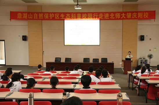 10月8日,鼎湖山国家级自然保护区(隶属于中科院华南植物园)工作人员带着精美的濒危动植物展板,具有趣味性科普小实验和生动活泼的森林知识讲座走进北京师范大学(珠海)肇庆附属学校,和这里90多名师生一起开展了一场绚丽多彩的森林奥秘之旅。