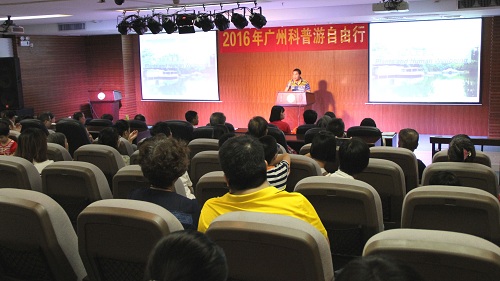 参观活动开始前,华南植物园科普工作者为参与活动的市民作《植物让人类生活更美好》科普知识讲座。从植物的起源到人类的起源,从水稻、小麦、玉米给人类生活带来的巨大影响,到葡萄、郁金香如何导致国家的兴衰,从可可、茶叶使生活更美好,到烟草、罂粟使人堕落。通过通俗易懂的例子,深入浅出、生动活泼的语言吸引听众,在你问我答、你思我辩的热烈气氛中开展科普互动、科普有奖问答等活动,帮助孩子及家长了解到植物在人类历史及生活中的重要作用,加深市民保护植物、保护环境、保护地球的意识。