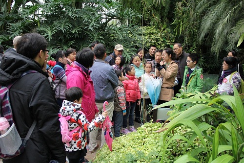 参观活动开始前,华南植物园科普工作者为参与活动的市民作《自然观察,点亮生活的魔法棒》科普知识讲座。从植物的起源、植物生存的智慧到人类的起源,人类引种驯化植物给人类生活带来的巨大影响,到与“智者同行”,如何让自然观察成为点亮生活的魔法棒。通过通俗易懂的例子,深入浅出、生动活泼的语言吸引听众,在你问我答、你思我辩的热烈气氛中开展科普互动、科普有奖问答等活动,帮助孩子及家长了解到植物在人类历史及生活中的重要作用,鼓励市民加入自然观察的队伍,做一个有爱的人、做一个对环境友善的人,做一个有生活情趣的人。