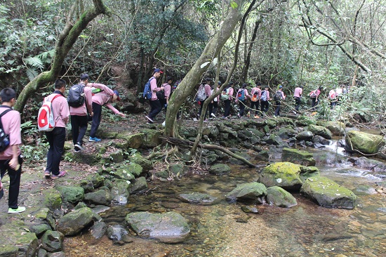 首先,在《鼎湖山保护区的奥秘》的讲座上,学生们了解鼎湖山保护区是我国第一个自然保护区,我国首批加入联合国教科文组织“人与生物圈”计划的保护区,这里还被誉为华南生物种类的“基因存储库”、“活的自然博物馆”、“北回归线上的绿色明珠”;随后,工作人员带领学生们参观大自然主题展厅,展厅中的两栖类动物标本、精美的图片和种类繁多的昆虫标本都能吸引学生驻足许久。之后,在工作人员的带领下走进森林中,学生们纷纷发出“空山不见人,但闻人语响;返景入深林,复照青苔上。”的感慨。此时,工作人员引导学生们打开五感来体验森林里的另一种神秘,他们看见了站在树梢上的鸟儿、地上乱窜的山蚂蚁、在自己织的大网里休息的蜘蛛、飞翔觅食的蝴蝶、在毛麝香的叶片上随意留下痕迹的隐叶虫。他们看见了紫玉盘的盘花、假鹰抓的一串串种子、假苹婆的红彤彤的果实、蕨类植物的卷须。他们听见了知了的叫声、鸟儿各式各类的声音,在深山中显得格外悦耳。最后,在潺潺的溪水边,同学们化身科研人员,体验了一次监测水质的试验,为自己得到的检测数据感到欣喜和自豪。在大自然中,学生们无时无刻不在体验着大自然给予他们的美好馈赠。