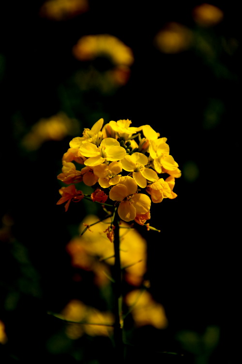 油菜花是一年生草本植物,十字花科(Brassicaceae),常见的是Brassica capestris及B.napus两种。叶互生,无叶柄及托叶;花瓣4枚,黄色,呈十字形。雄蕊通常6枚,4长2短;果实为长角果,种子紫黑色或黄色。油菜花虽原产于欧洲与中亚一带,但在我国的种植面积却是世界第一,尤以长江流域及以南各地为最多。