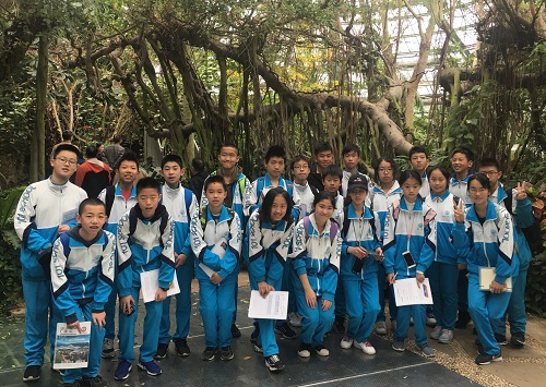 随后,广州市十佳科普讲解员带领同学们考察了世界植物奇观——华南植物园温室群景区。神秘的热带雨林、豪放的沙漠风情、遗世独立的高山世界、多姿多彩的奇花异果,科普讲解员仔细为大家讲解了它们的魅力。高温高湿的热带雨林中,迷雾、瀑布与各种绞杀、独木成林等千奇百怪的植物现象结合在一起,仿佛让人置身于亚马逊流域丛林中探险。干燥炎热的沙漠植物室中,隐身在石头堆里面的生石花、仙人掌中的巨无霸武伦柱、主刺异化成鱼钩状的巨鹫玉等沙生植物,其生长环境与生存特性皆令同学们惊叹不已;奇花异果齐聚一堂的奇花异果温室让同学们眼界大开。从热带雨林漫步到沙漠地区,再穿越到高山世界,同学们纷纷表示近两小时的参观过程中看到了来自世界各地不同气候带的植物,上了一堂生动的植物分类学课程,大饱眼福。