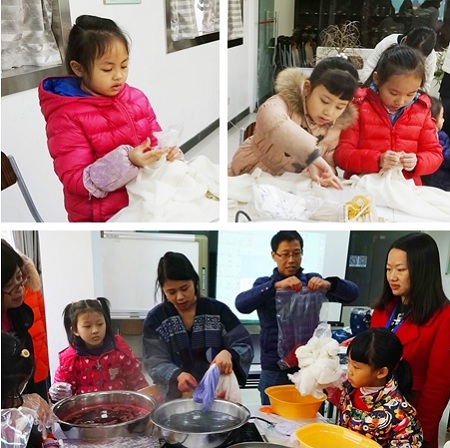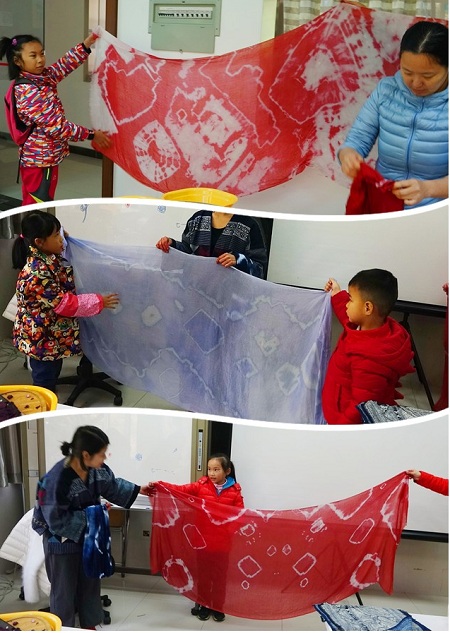 活动结束后,大家依然留恋不舍,围在老师身边请教各种问题。小朋友们说,动手将一条普通围巾变得色彩斑斓,其间不仅有历史的传承,也体现了现代的创新,家长们也纷纷表示,本次课程不但在寓教于乐中学习到了中华传统文化博大精深,而且也增加了对我国传统手工扎染技艺的了解与认知,更加重要是提高了孩子们敢于动手的兴趣和不断创新的能力。
