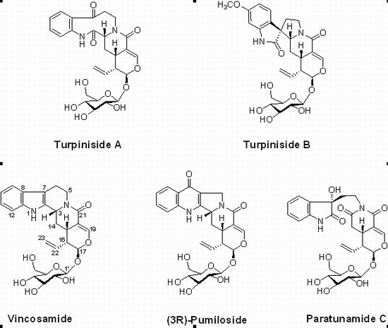 山香圆中的单萜吲哚生物碱类化合物