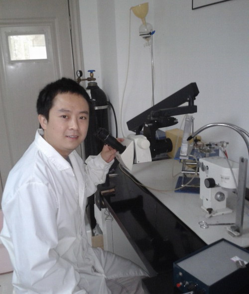 钱政江博士利用细胞压力探针测定黄瓜根细胞水分传导效率