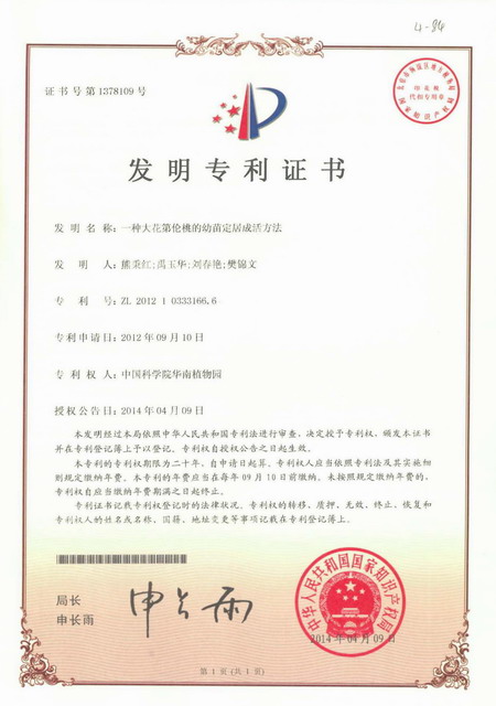 5月7日获悉,由华南植物园熊秉红等研究完成的“一种大花第伦桃的幼苗定居成活方法”获得国家发明专利授权(专利号:ZL201210333166.6)。