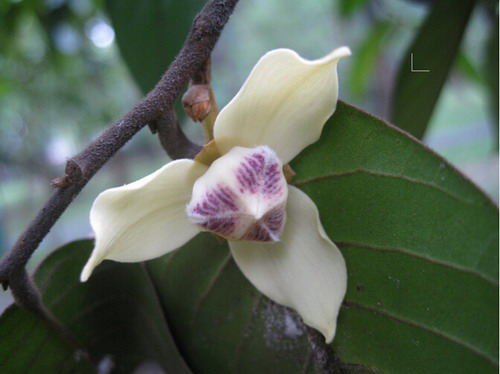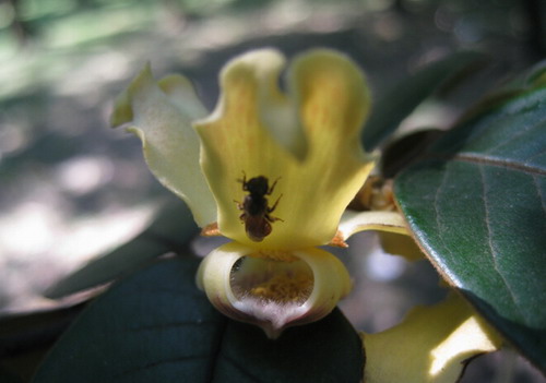 华南植物园植物结构与发育生物学研究组徐凤霞研究员带领硕士研究生张勇梅于2012年底起,开展番荔枝科银钩花传粉生物学及相关花部结构特征研究。2013年3月19日开始进入花期,直至4月12日第一个花期结束,果期为6-10月。2013年9月20日至10月12日进入第二个花期,果期为2014年3-7月。同时,2012年物候记录亦是两次开花。观察的五株母树在第一次花期由于温度较低,降雨天数较多,结实率只有0.1%;而第二花期温度较高,降雨天数较少,结实率达13.9%。在同属植物M. heyneana的研究中,观察到在热带地区其唯一访花者及传粉者是小型甲虫,而在地处亚热带的广州,发现除小型甲虫以外的大型甲虫及蓟马类为银钩花的访花昆虫。