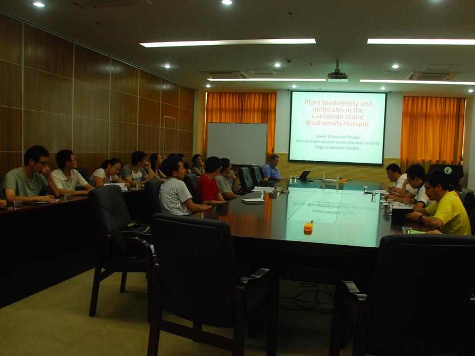 访问期间,Javier Francisco-Ortega副教授在华南植物园做了题为“Plant Biodiversity and Molecules in the Caribbean Island Biodiversity Hotspot”的学术报告,Hong Liu助理教授做了题为“Fates of wild orchids transplanted to higer elevation in the Yachang Orchid Nature Reserve and their implications to conservation of rare species in the face of global changes”的学术报告,获得了热烈的掌声,并与华南植物园科研人员和研究生们就相关领域研究进展进行了深入的学术交流。随后,Javier Francisco-Ortega副教授和Hong Liu助理教授还与华南植物园任海研究员、邢福武研究员等科研人员进行研讨座谈,就人才培养、科研交流达成了合作意向。