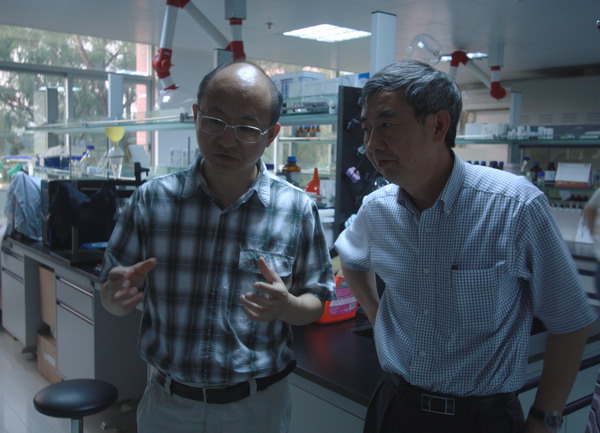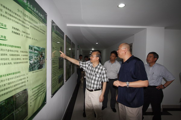 随后,张亚平一行重点考察了华南植物园实施三个重大突破的各研究中心实验室和公共实验室。在综合实验大楼各层的专业实验室里,各课题组研究人员向张亚平介绍了各自的研究方向及科研成果,特别是在植物转基因工程、新品种培育、环境治理与生态安全等方面的最新进展。张亚平认真听取了介绍,不时与科研人员亲切交谈,并对学科方向、人才引进、成果转化、考评机制等方面给出了指导性意见。在公共实验室里,徐信兰主任简要介绍了实验室的历史、规模和为园内外科研工作所做出的贡献,以及“创新三期”以来公共实验室建设情况。张亚平对华南植物园公共实验室规范化建设和管理给予了肯定。