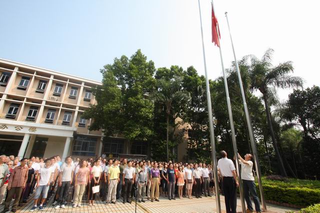 9月29日上午,中科院华南植物园隆重举行庆祝新中国成立63周年升旗仪式。仪式由园副主任魏平主持,园党委书记任海,副主任傅声雷,党委委员周国逸、夏汉平、范德权,及全体在职和离退休职工、研究生参加了升旗仪式。