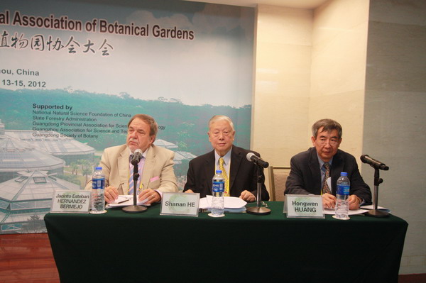 大会开幕式由国际植物园协会主席贺善安、秘书长Esteban Hernandez Bermejo教授、中科院华南植物园主任黄宏文共同主持。刘亚文在致辞中说,植物园在生态恢复和野生植物迁地保护中承担着重要角色,加强生态环境恢复和野生植物的迁地保护,具有重要而深远的意义。出席大会的都是国内外植物学科的学术带头人,期望通过合作与交流,促进植物园在生态恢复和迁地保护中的重要作用。