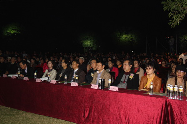 广东省委宣传部副部长顾作义、省文联党组书记白洁、省文化厅副厅长杨树、省文联专职副主席李萍,以及《我爱五指山,我爱万泉河》的创作者、广东省音乐家协会主席刘长安等作为嘉宾也出席了此次艺术盛典。华南植物园主任黄宏文祝贺此次音乐节的胜利召开,并与参会领导和嘉宾进行了亲切交谈,顾作义表示合唱艺术盛典在美丽的华南植物园举行,是第一次尝试美妙音乐与自然生态相结合营造高雅境地。大家还就十八大“尊重自然、顺应自然、保护自然”的生态文明理念进行深入交流。