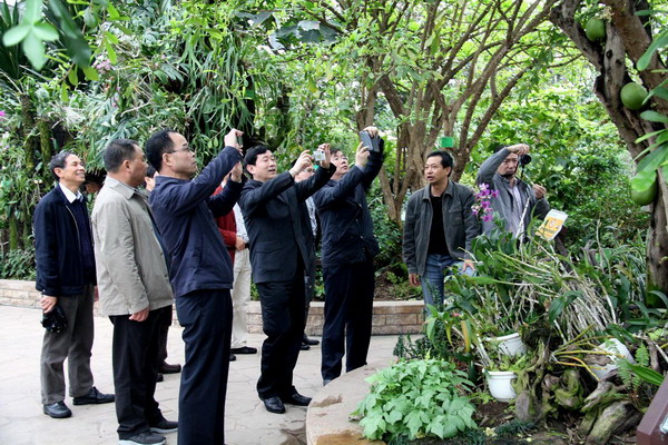 4月11-13日,武汉东湖生态旅游风景区管理委员会工委书记、管委会主任张卫国、副主任陈建新率代表团考察华南植物园。华南植物园园艺中心领导蚁伟民、蒋厚泉、廖景平、熊秉红,以及丁朝华、陈国仆和温室综合管理部的相关负责人等热情接待了代表团一行。