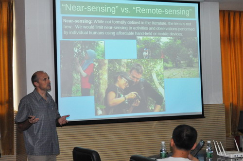 访问期间,Chuck Cannon教授作了题为Southeast Asian Land Area Dynamics during the Quaternary Period and Its Relationship to Plant Species Diversity and Forest Types的学术报告。Cannon教授首先简单介绍了刚刚召开的‘NSF-NSFC Field Course: Near-sensing Asian Tropical Forests’,强调植物科学研究与工程设计合作对植物科学研究技术进步的重要性。然后重点介绍了东南亚生物地理研究的模型系统,并深入探讨了第四纪东南亚特别是巽他大陆架森林的分布。报告内容丰富,现场气氛活跃。会后,大家对东南亚的生物地理产生了浓厚的兴趣,提出了很多跟自己的研究工作相联系的问题并与Cannon教授进行了深入的讨论。