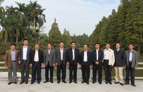 11月17日,广西自治区副主席、广西科学院院长黄日波率广西科技厅、广西科学院、科学活动中心等单位领导一行莅临中科院华南植物园视察。广东省科技厅厅长、中科院广州分院院长黄宁生,广州分院党组书记郭俊等领导陪同视察并洽谈合作。华南植物园党委书记任海以及合作交流处、综合办和园艺中心等部门领导热情接待来宾并陪同参观。
