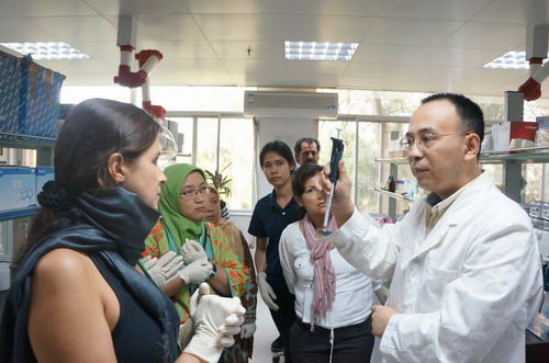 历时18天的培训中,华南植物园精心组织了由恢复生态学研究组傅声雷研究员和刘占锋副研究员、植被与景观生态研究组任海研究员和陆宏芳研究员、植物分类与资源研究组夏念和研究员、分子生态学研究组葛学军研究员、植物结构及发育生物学研究组邹璞博士、果蔬采后生物学研究组朱虹副研究员以及陈忠毅研究员和来自新加坡植物园Khoon Meng Wong首席研究员共同组成授课队伍,分别在生态恢复、珍稀濒危植物保护、热带雨林保护、姜科植物和竹类资源的保护利用以及分子标记在保护生物学中应用等多个方面进行了介绍。培训期间,学员听课认真专注,踊跃提问,每个报告内容详实、图文并茂,讲述条理清晰,表达流畅,同时还安排学员在姜园、竹园实地学习并亲自动手实践分子实验。同时学员们也介绍了各自国家的概况和在生物多样性保护方面的工作情况,增进了彼此之间的相互了解,也激发了学员的积极性。