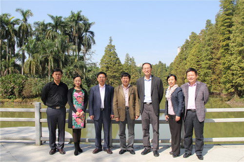 11月26日,湖南省新田县县委书记龚新智、宣传部长赵红萍等一行访问华南植物园。华南植物园园主任助理蚁伟民、园艺中心执行主任蒋厚泉等热情接待了来宾并开展了合作交流洽谈。
