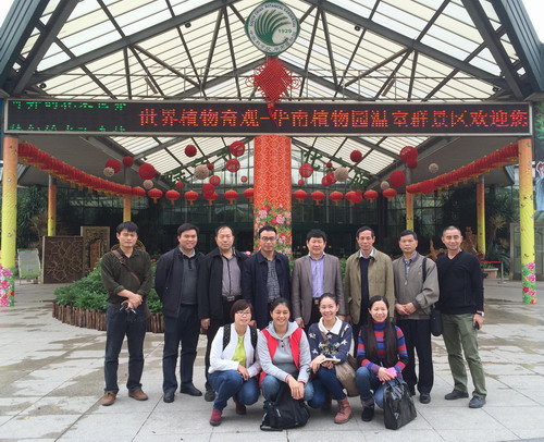 2月28日,广西省南宁青秀山风景名胜旅游区党工委书记、管委会主任李伟进率领团队一行12人访问华南植物园。华南植物园园主任助理蚁伟民、园艺中心执行主任蒋厚泉等热情接待了来宾并开展了交流洽谈。