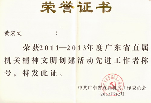 4月21日,根据《中共广东省直属机关工作委员会关于表彰2011-2013年度广东省直属机关精神文明建设先进单位和先进工作者的决定》获悉。中国科学院华南植物园黄宏文研究员荣获2011-2013年度“省直机关精神文明建设先进工作者”荣誉称号。这一荣誉主要是授予那些思想觉悟高、道德品德好、爱岗敬业、为民务实清廉,近三年精神文明创建活动中作出突出贡献,得到组织肯定、群众公认的人员。此次广东省直机关工委共表彰了黄宏文等38名同志。