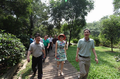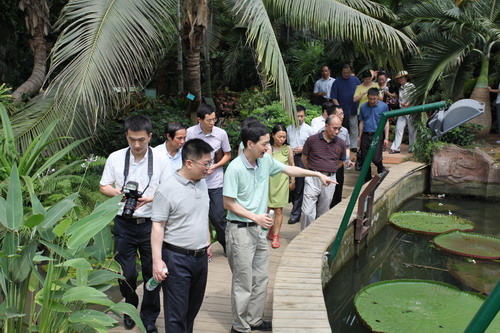 5月28日,广州市委宣传部副部长崔颂东及天河区委宣传部童慧部长率市、区文广新局及相关单位领导专家一行25人调研中科院华南植物园文化景点建设情况。受黄宏文主任委托,任海书记等热情接待并陪同调研。