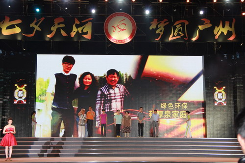 晚会现场,大会宣读了2014广州天河区十大“最美家庭”名单,其中华南植物园职工蒋厚泉、周艾蓉获得了“绿色环保家庭”称号,石奇珠为获奖家庭颁发了荣誉奖牌。评委组对获得十大“最美家庭”的“绿色环保—蒋厚泉、周艾蓉家庭”给予了肯定评价,一个幸福和谐、充满关爱的绿色环保家庭。蒋厚泉十几年来积极从事科普旅游工作,他率领科普团队开展了各类绿色环保科普活动,先后荣获广东省、广州市旅游科普“先进工作者”、中科院“十一五”科学传播先进个人等光荣称号。周艾蓉从事医疗和预防保健工作20多年,她尊老爱幼、勤俭持家,2013年她被广州市评为“廉内助”的光荣称号。