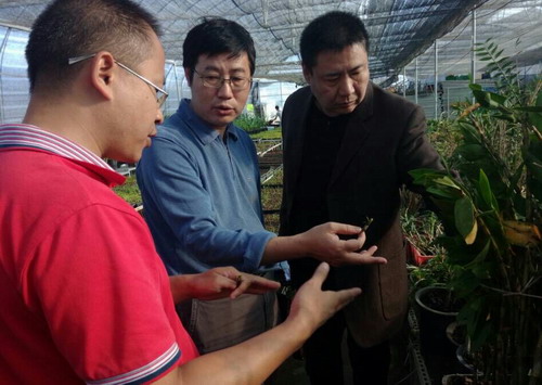 段俊研究员(中)实地讲解兰花技术
