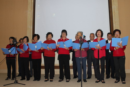 大会开始前播放了退休职工王学海同志的一批摄影作品,与会代表欣赏了一幅幅美丽的大自风光和王学海同志精湛的摄影技术。随后进行了以“同心共筑中国梦”为主题的文娱表演。所表演的节目都是由离退休干部职工自编、自排、自演的,有男声小组唱、女声小组唱、女声独唱、表演唱、舞蹈、大合唱、乐器表演等12个节目。表演以唱响“中国梦”的合唱《中国梦》、《我的中国梦》等歌曲拉开序幕,期间研究生进行一个舞蹈表演助阵。节目内容丰富多彩,演出高潮迭起、掌声阵阵、欢乐融融。