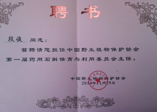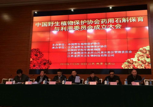 由民政部批准的“中国野生植物保护协会药用石斛保育与利用委员会”成立大会于11月29日在江西鹰潭市召开。国家濒危物种进出口管理办公室周亚非巡视员、中国绿色时报社张连友常务副社长、江西省林业厅副厅长詹春森和中国科学院孙永溪高工等领导、以及来自全国药用石斛科研、管理部门、企业界代表200多人参加会议。