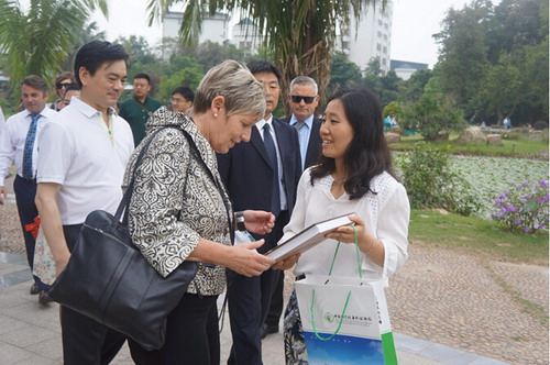 访问期间,达尔齐尔一行参观了展览温室群及部分专类园区。来宾们对华南植物园种类繁多的植物和优美的景观设计表示了高度赞赏。参观途中,华南植物园还赠送了达尔齐尔市长《Plants of China》一书。