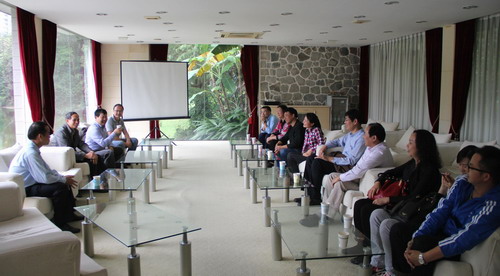 座谈会上,蚁伟民首先对代表团的到来表示热烈欢迎,并简要介绍了华南植物园的历史与现状、主要研究领域和代表成果、院地合作、科普传播与旅游开放等情况。蒋厚泉重点就华南植物园开展科普工作的经验等,与湖北省科协代表团进行了深入交流和探讨。他以华南植物园作为全国科普教育基地案例,从如何提升湖北省科普基地能力建设为着眼点,围绕当前形势下科普发展战略、科普场馆建设与管理、主题活动策划、讲解队伍的构成与管理等方面内容进行讲授。蒋厚泉认为,创新转型已是当前我国科普领域的严峻挑战,科普如何更加务实高效是目前当务之急,只有拓展科普理念和创新传播活动,才能受到公众的认可。