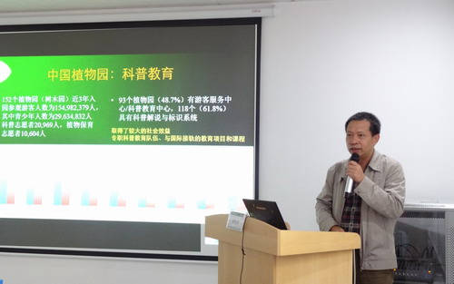 学术年会上,黄宏文研究员作了题为《植物引种驯化对近代500年人类文明史的影响》的特邀大会报告,阐述了植物引种驯化及其广泛栽培深刻改变了世界农业生产的格局,对促进人类社会文明进步产生了深远影响;廖景平研究员以《中国植物园调查:基本现状与发展对策》为题,介绍了中国植物园的基本情况以及在物种迁地保育、资源发掘利用和科普教育方面的调查结果,并对中国植物园未来发展提出了建议;张林海研究员以《植物园在应对未来粮食安全可以发挥更大的作用》为题,介绍了植物园加强农作物野生近缘种及优异遗传资源的引进、保护及发掘利用工作,对解决环境问题和粮食危机具有重要意义;文香英女士作了题为《BGCI与中国植物多样性保护——BGCI中国保护项目进展》的报告。华南植物园代表团还围绕专类园建设、迁地志编撰、植物引种保育评价等方面作了专题报告,分别介绍了水生植物园生境营造和展示水生植物多样性的技术、中国迁地栽培植物志的编研进展与在线编撰系统以及木兰科植物迁地保育的评价方法。湛青青博士的报告《<中国迁地栽培植物志>与在线编撰系统》荣获了“优秀青年报告”奖。