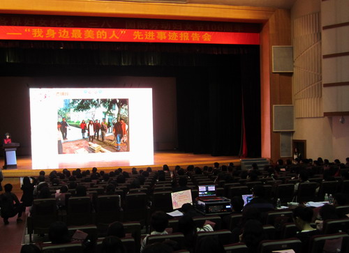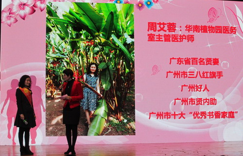 3月3日,广州市天河区各界妇女纪念“三八”国际劳动妇女节106周年——“我身边最美的人”先进事迹报告会在天河区政府大会厅隆重举行。广州市妇联主席刘梅,天河区妇联主席张庆玲,区委常委、组织部长龚伟河等领导出席会议;获省、市、区妇联表彰的先进个人(集体)代表及各界妇女代表1000余人参加了报告会。华南植物园周艾蓉同志应邀出席会议并作先进事迹报告。