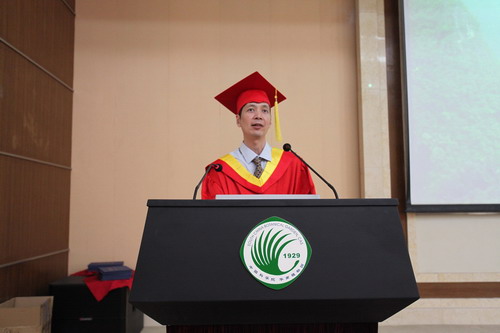 李涛涛作为毕业博士生代表进行了发言。他对所有老师、领导多年来的关心和指导表示衷心的感谢,对各位同窗顺利完成学业表示热烈的祝贺。他对自己五年的科研生活感慨万千,其中感触最深的是感恩和责任。他说导师的包容和言传身教,让他在科研和为人处事上得到了极大的提高;而植物园几年的学习,尤其是博士期间的经历,使得他对生活、科研、事业、对人生有了新的更深刻的解读。强烈的责任感也将永远是他判断、决策和行事的准则。