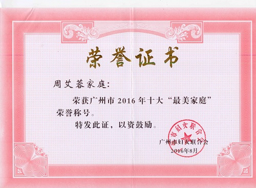 为贯彻落实习近平总书记重要讲话和中国妇女十一大精神,发挥妇女在弘扬中华民族家庭美德的独特作用,引导广大妇女和家庭践行社会主义核心价值观。根据穗妇〔2016〕16号文件通报,广州市妇联开展的“寻找最美家庭”评选活动结果揭晓,十大“最美家庭”名单最终公布。中科院华南植物园周艾蓉家庭荣获该项殊荣。