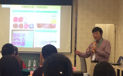 会上,段俊研究员应邀作了“石斛类中药材资源开发利用过程中的问题探讨”大会专题报告。报告从药用石斛资源开发利用现状、药用石斛品种选育、规模化规范化栽培和品质控制技术等方面进行了深入阐述,并介绍了中国科学院华南植物园在药用石斛研究与产业化方面所做的工作和取得的成果,引起了参会专家们的兴趣和热烈讨论。