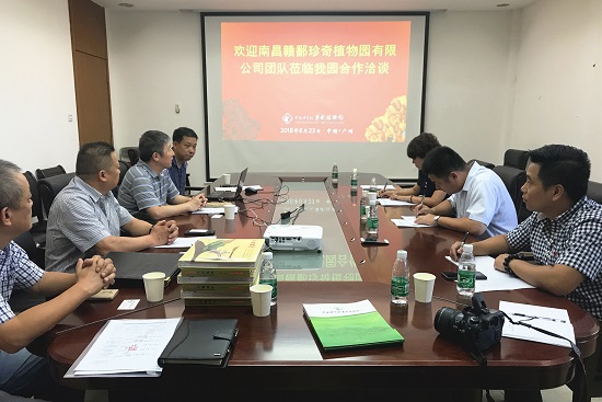 8月23日,江西南昌市赣鄱(溪霞)珍奇植物园建设项目团队访问华南植物园。华南植物园党委书记张福生,园艺中心副主任廖景平,科技促进发展中心主任王克亚、陈海山等热情接待了考察团一行。