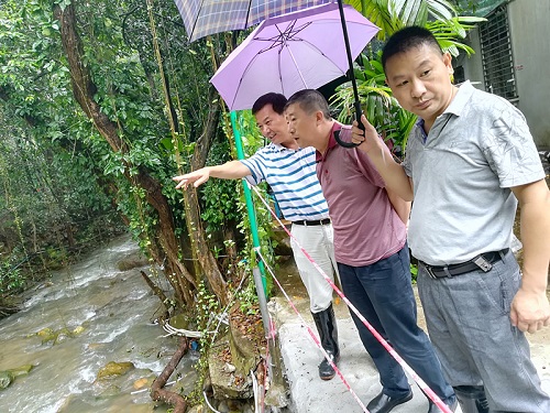 在检查的过程中,张福生认真听取了汇报,与大家共同探讨科研生产安全存在问题的解决方案,研究如何建立健全安全工作长效机制,提出意见建议。在检查过程中,他还冒雨到鼎湖山定位站塌方现场及山洪冲垮的山涧现场检查指导,与台站工作人员亲切交谈。他指出,安全无小事,大家要切实提高责任意识,做好重大安全事故的防范工作,防止麻痹思想,切实将安全工作落到实处。
