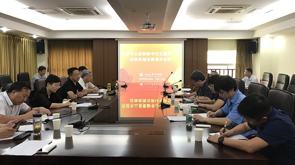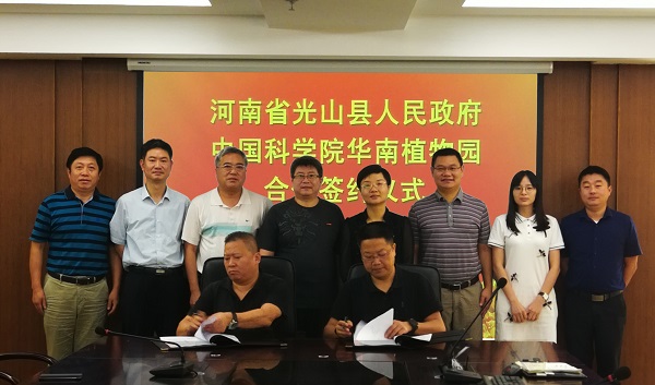 交流会上,张福生详细介绍了中科院华南植物园的历史沿革、战略定位、成果项目以及对国家战略和社会发展起到的促进作用。王建平提出,河南省光山县地处南北方气候过渡带,具有良好的气候和植物资源,希望与中国科学院在茶产业开发与技术指导、生态林与特色经济植物种植、过渡带活体植物种质资源库建设及博士硕士实践基地、工作站建设等方面开展重点合作。科技促进发展中心崔博针对产业合作内容做详细介绍,闫俊华及参会专家分别从不同的层面对合作内容的落实提出了宝贵意见和建议。随后,在双方团队的见证下,光山县人民政府与中国科学院华南植物园共同签署了《战略合作协议书》。