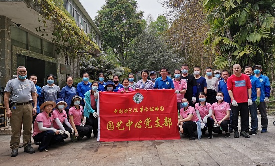 4月17日下午,中科院华南植物园园艺中心党支部党员在支部书记夏汉平带领下,以“防疫有我,爱卫同行”为题开展主题党日活动。支部34名党员参加了义务劳动。