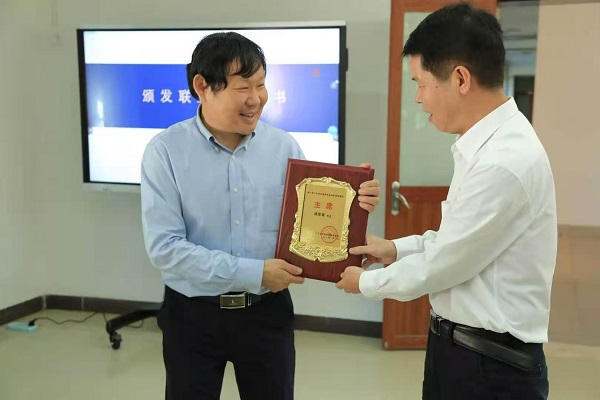 广东省科协副主席刘建军为新当选联盟主席蒋厚泉颁发证书